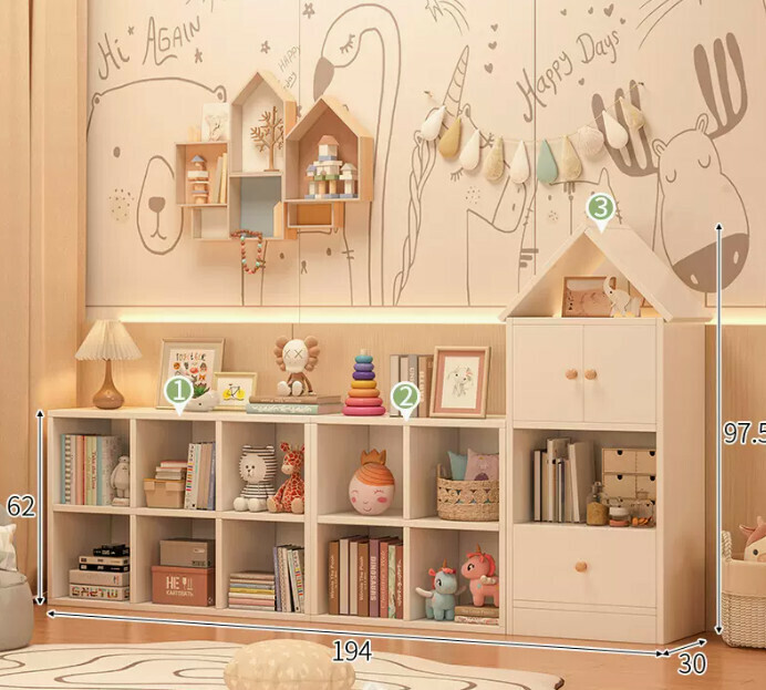爆款兒童書架(小房子+四格+六格原木色(組合款))