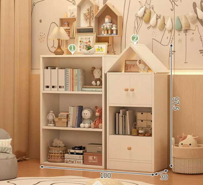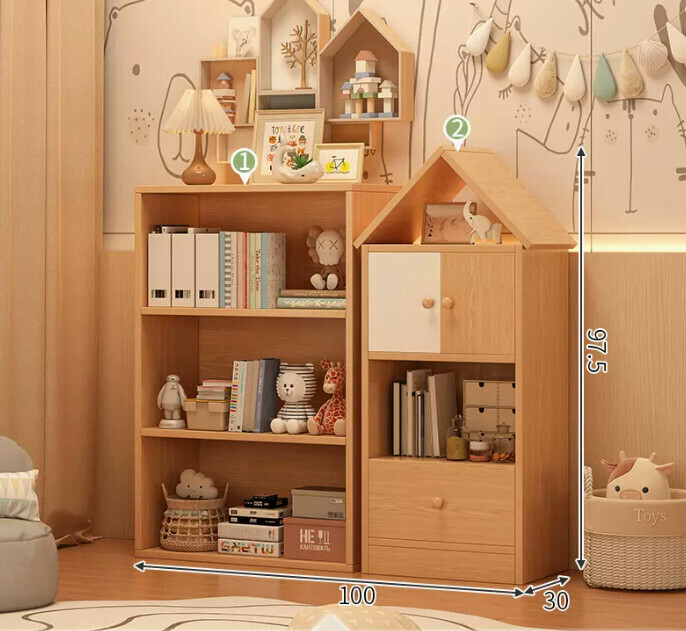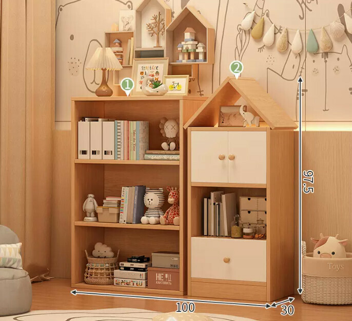 爆款兒童書架(小房子+三層櫃原木色(組合款))