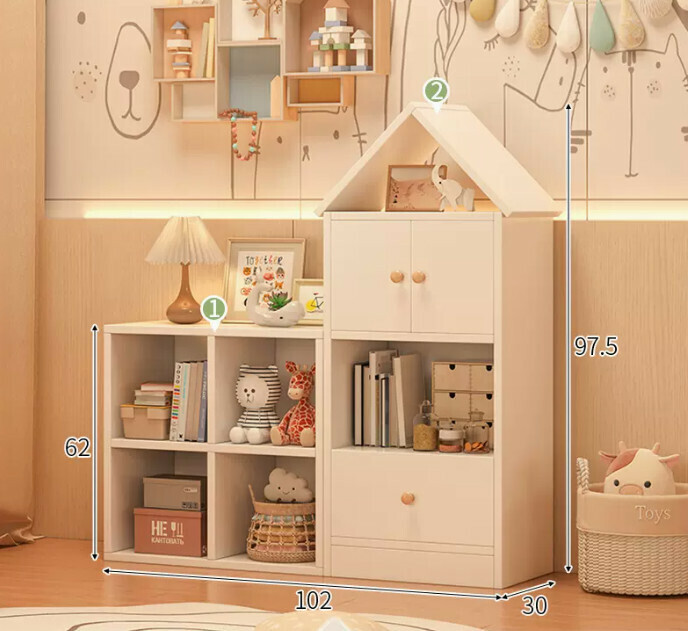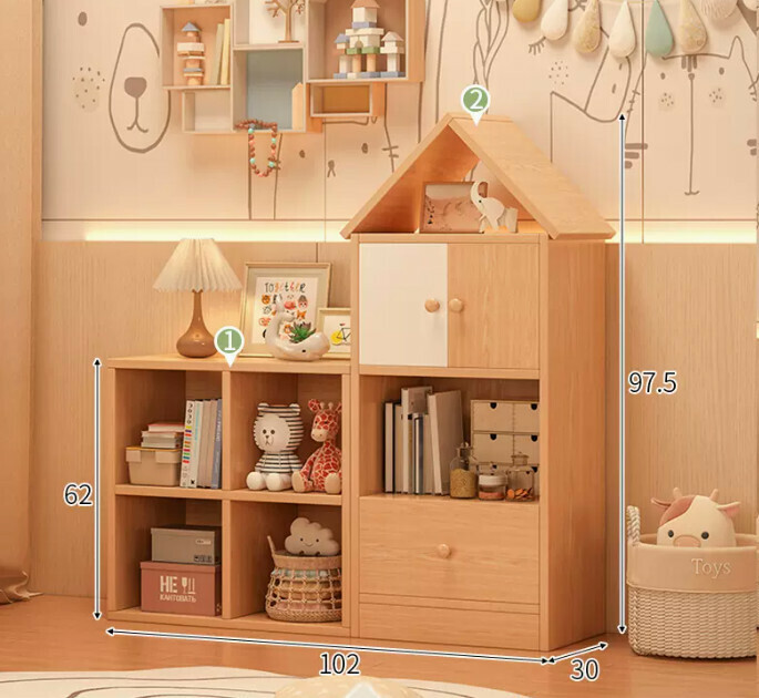 爆款兒童書架(小房子+田字格原木色加白門(組合款))