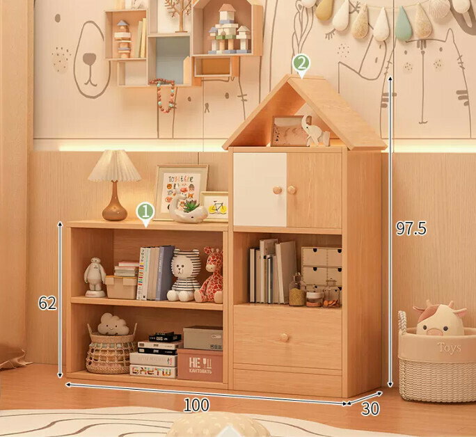 爆款兒童書架(小房子+兩層櫃暖白色(組合款))