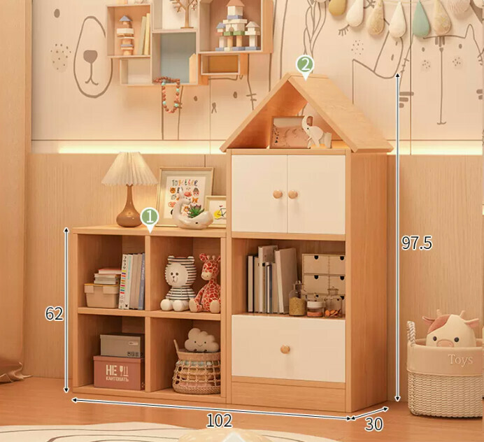 爆款兒童書架(小房子+田字格暖白色(組合款))