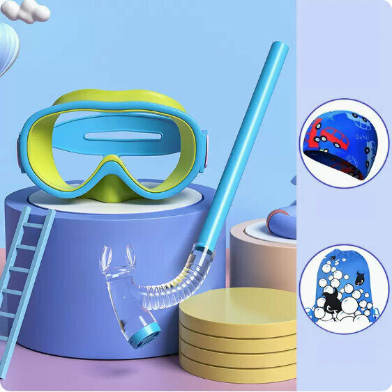 爆款兒童平光半乾式浮潛面鏡套裝(138藍色四件套)