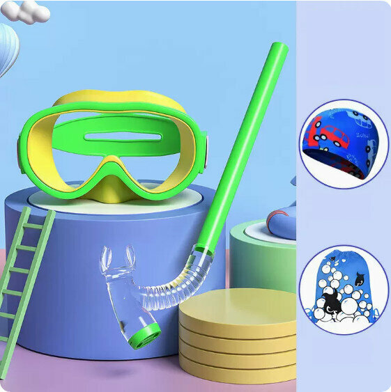 爆款兒童平光半乾式浮潛面鏡套裝(138綠色四件套)