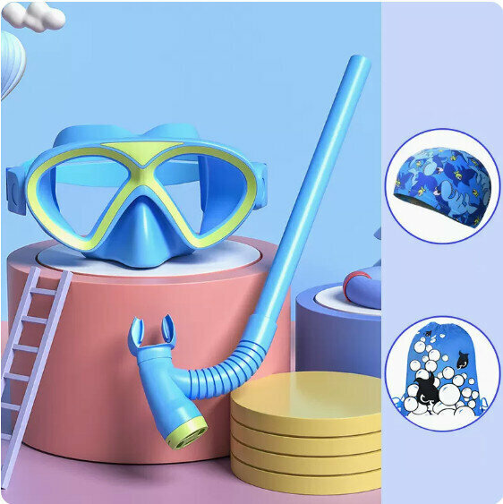 爆款兒童平光半乾式浮潛面鏡套裝(藍色四件套)