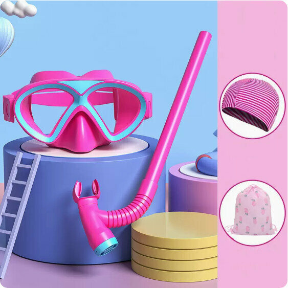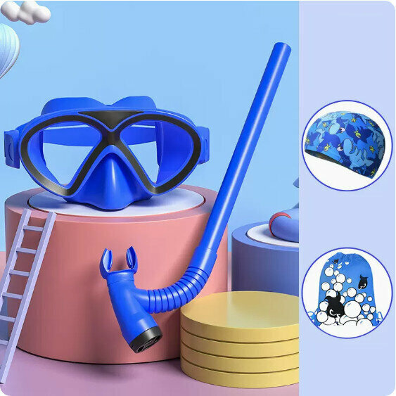 爆款兒童平光半乾式浮潛面鏡套裝(湖藍四件套)