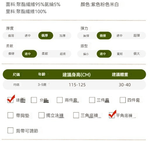 爆款兒童連體式泳衣【均碼(建議身高115-125CM,30-40磅,3-5歲)】【紫色】