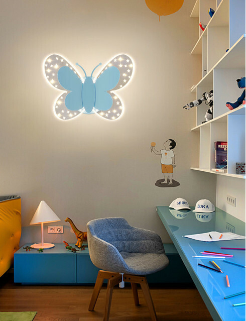 爆款兒童房過道卡通背景牆床頭(617粉藍色)【三色變光】