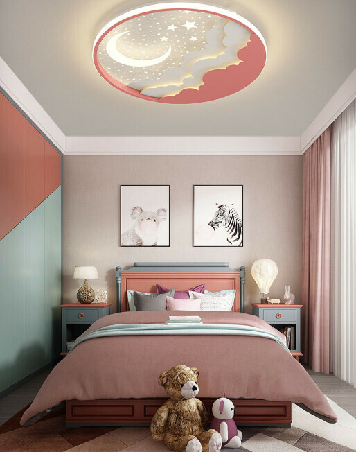 爆款兒童房星星月亮創意吸頂燈(藍色40cm)【LED三色變光】
