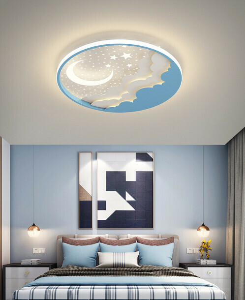 爆款兒童房星星月亮創意吸頂燈(藍色50cm)【LED三色變光】