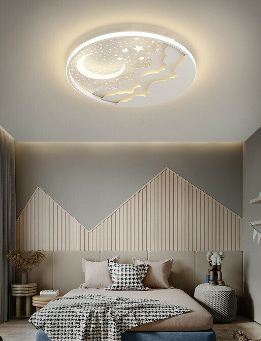 爆款兒童房星星月亮創意吸頂燈(粉色50cm)【LED三色變光】