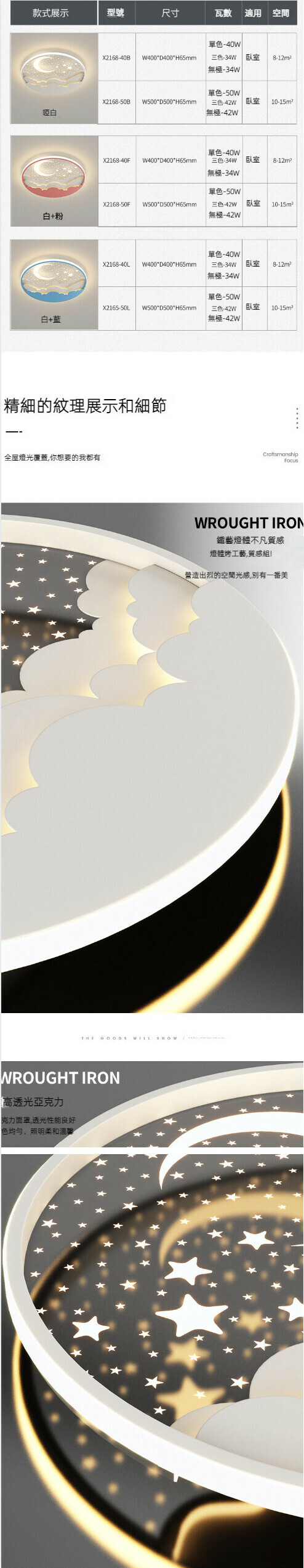 爆款兒童房星星月亮創意吸頂燈(白色50cm)【LED三色變光】