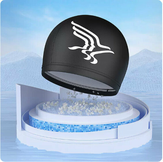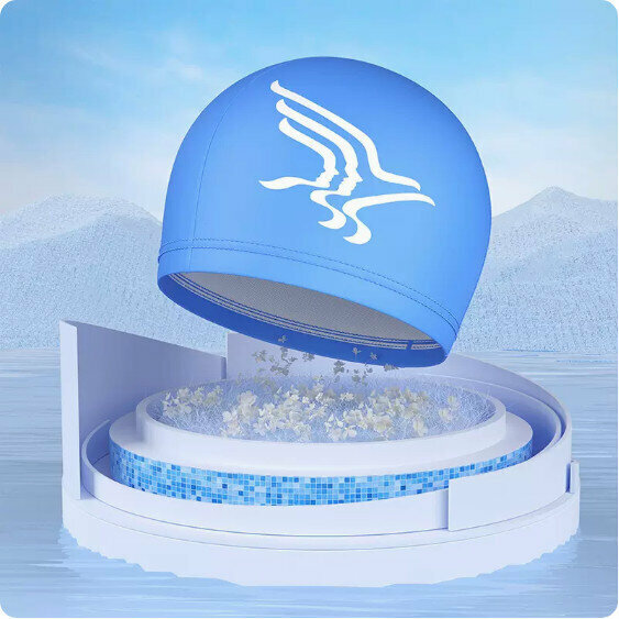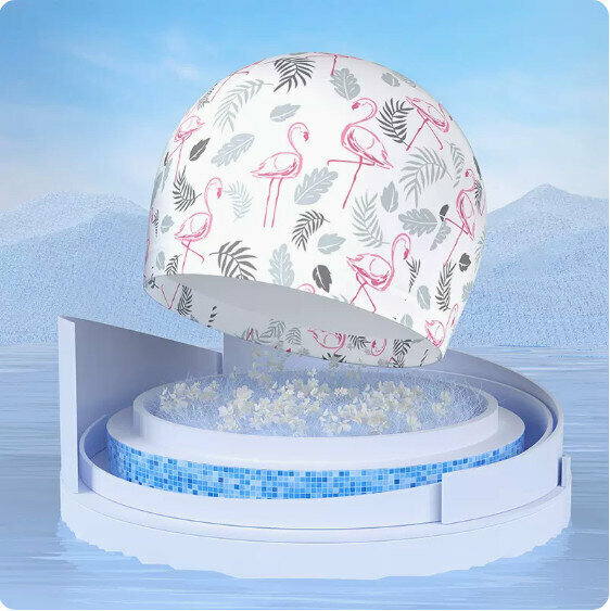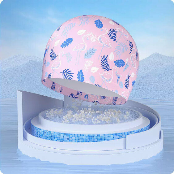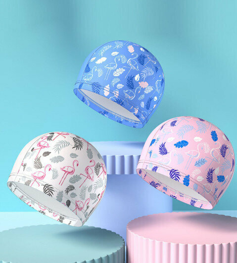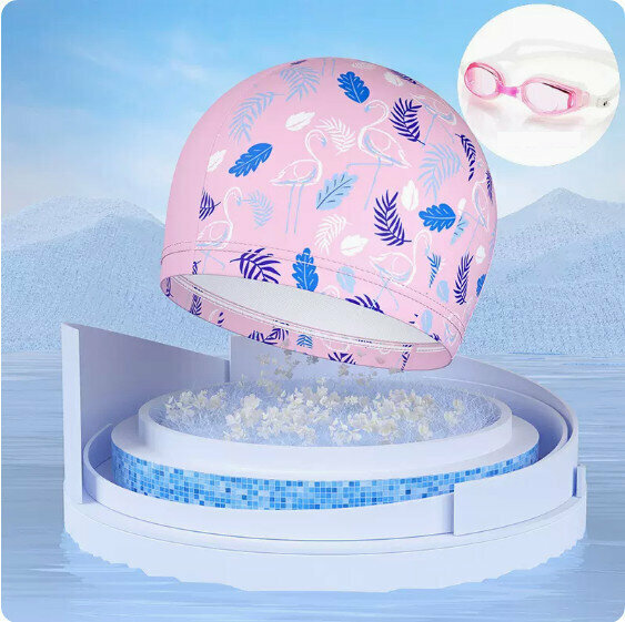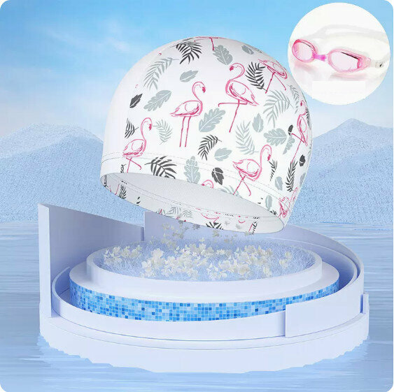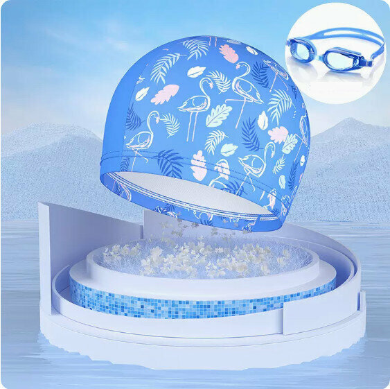 爆款兒童泳鏡游泳帽(藍色火烈鳥PU+泳鏡)