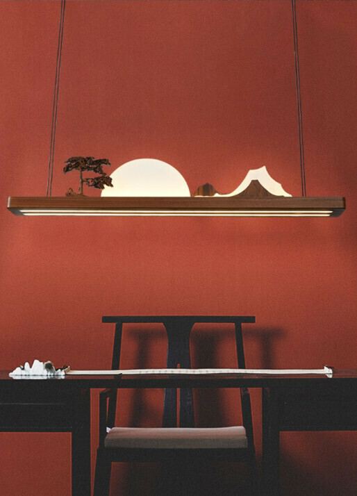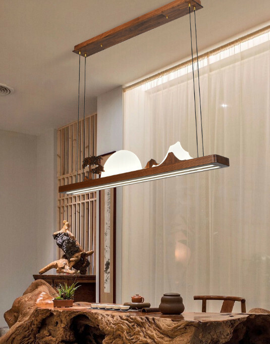 爆款中式餐廳長條led吊燈(【千里江山】中號 130cm三色變光)