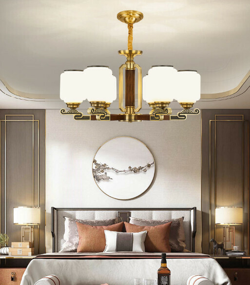 爆款中式實木吊燈(胡桃木-18頭)【LED三色變光】