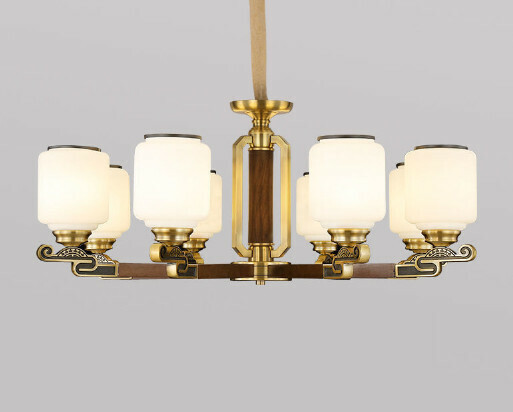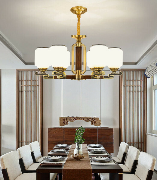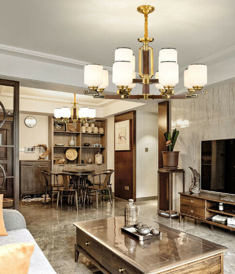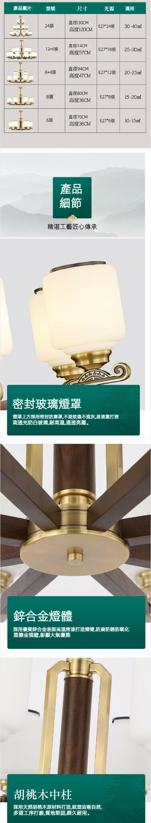 爆款中式實木吊燈(胡桃木-6頭)【LED三色變光】