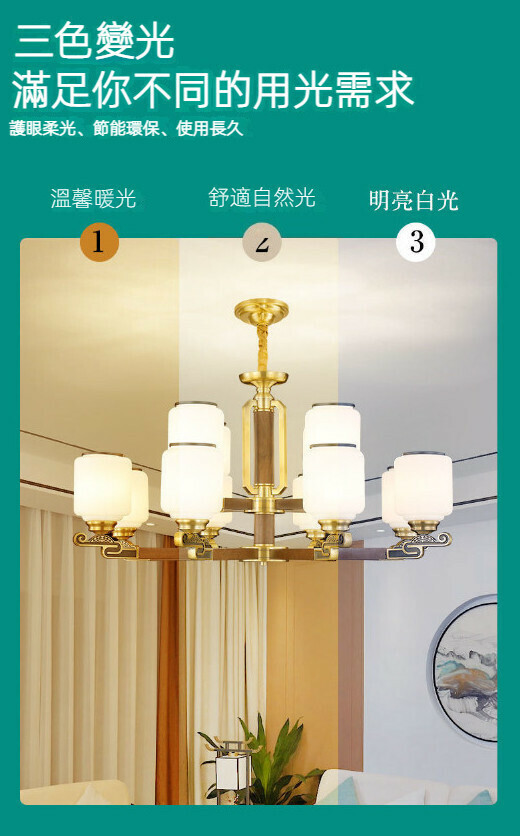 爆款中式實木吊燈(胡桃木-8頭)【LED三色變光】