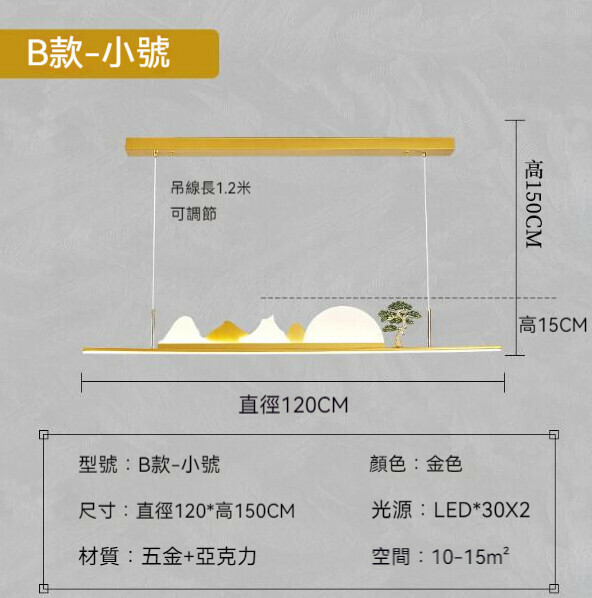 爆款中國風吧台書房吊燈(B款金色-120cm)【LED三色變光】