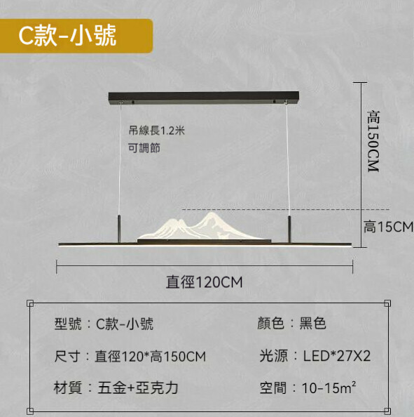 爆款中國風吧台書房吊燈(C款黑色-120cm)【LED三色變光】