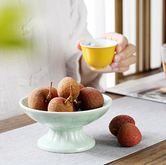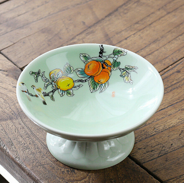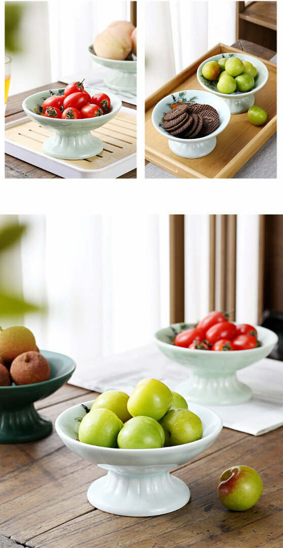 爆款中式陶瓷高腳青花果盤(墨綠青事實如意小號)