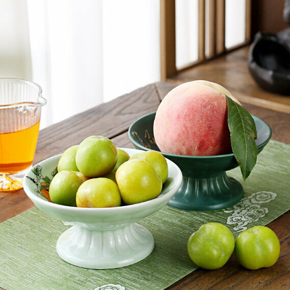 爆款中式陶瓷高腳青花果盤(梅子青事實如意小號)