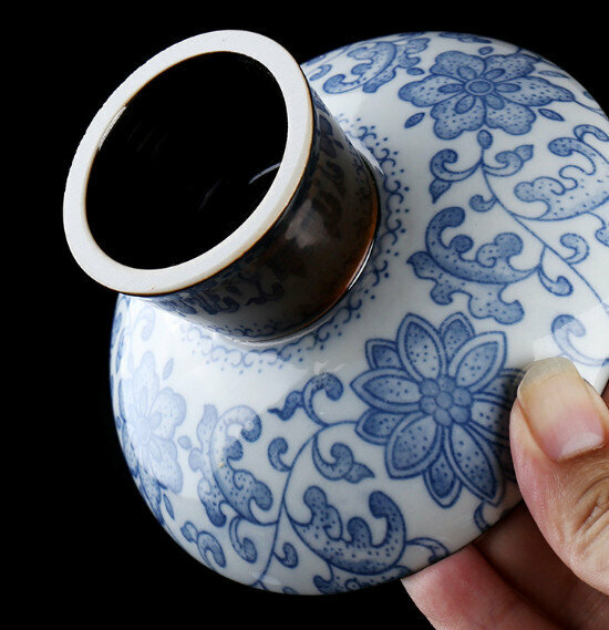 爆款中式陶瓷高腳茶點水果盤(青花萬福斗笠果盤)