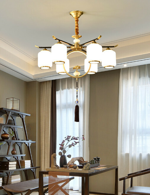 爆款中式銀杏葉全銅吸頂燈(6頭)【LED三色變光】