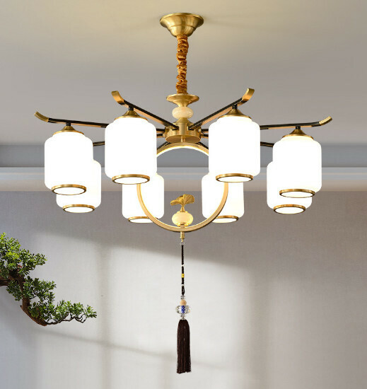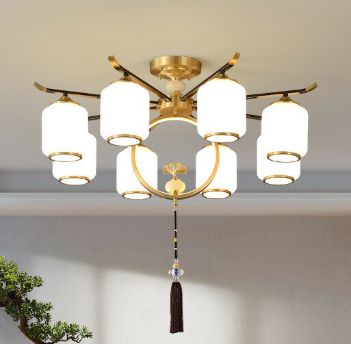 爆款中式銀杏葉全銅吸頂燈(8頭)【LED三色變光】