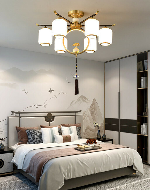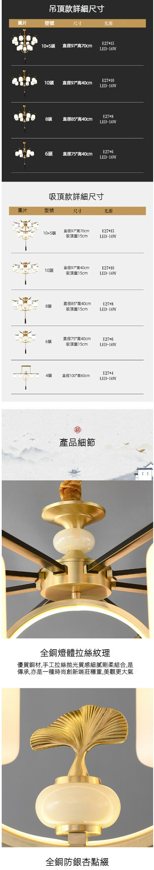 爆款中式銀杏葉全銅吊燈(6頭)【LED三色變光】