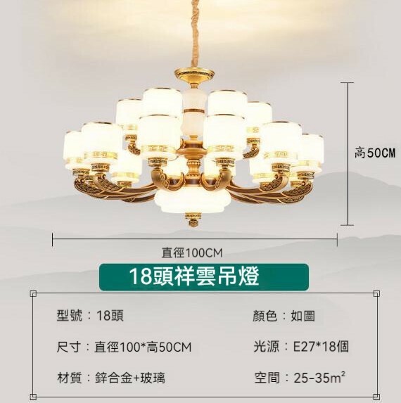 爆款中國風鋅合金吊燈(18頭)【LED三色變光】