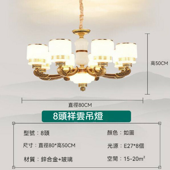 爆款中國風鋅合金吊燈(8頭)【LED三色變光】
