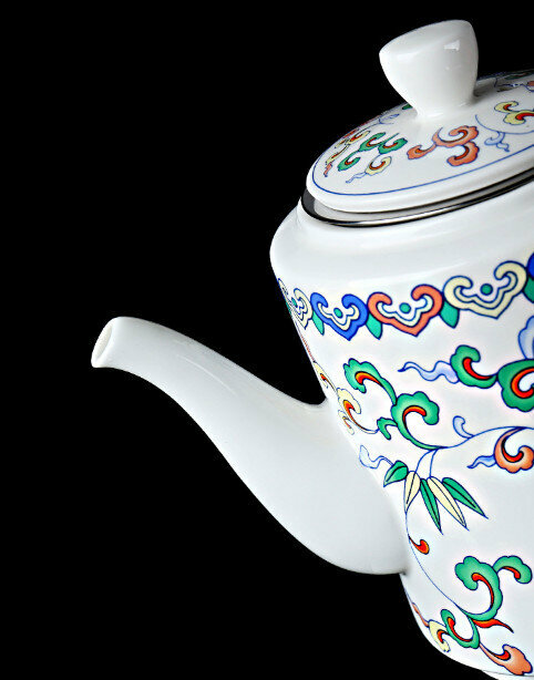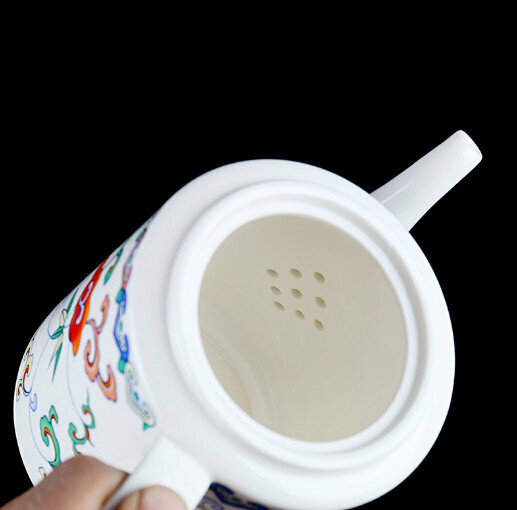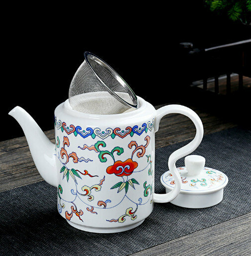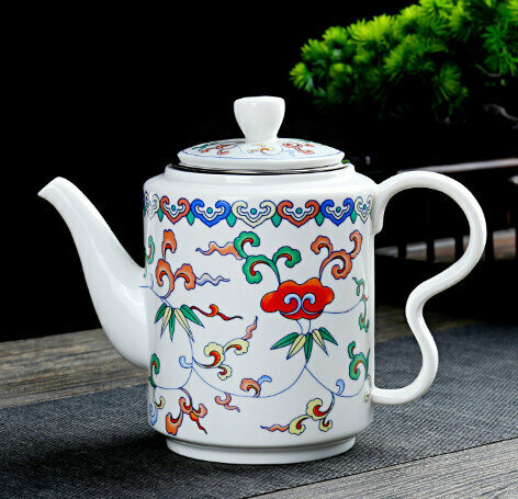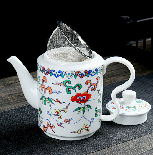 熱推經典款大容量茶壺(把手五彩纏枝單壺)【尺寸:長19.5cm*高14.5cm】