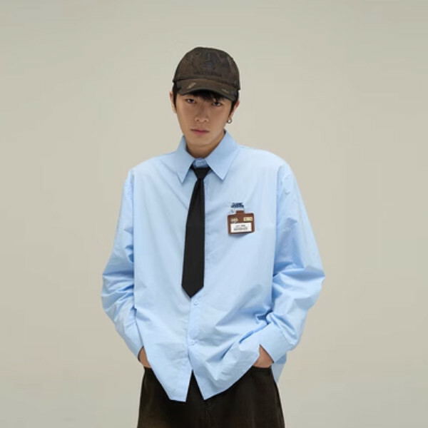 熱推學院風長袖襯衫領帶襯衣【藍色M-XL碼,下單後與客服確認發貨尺碼】