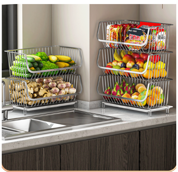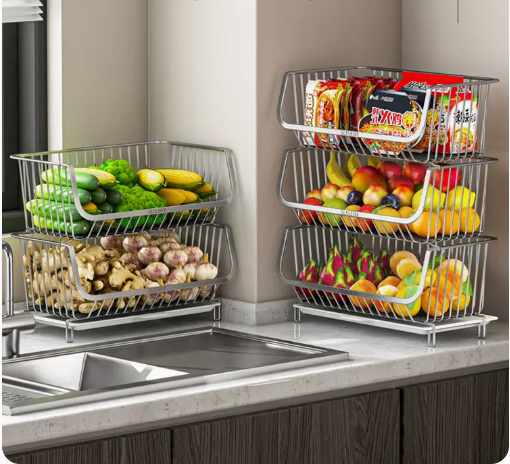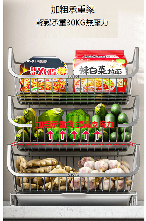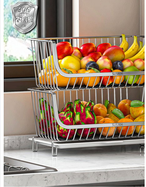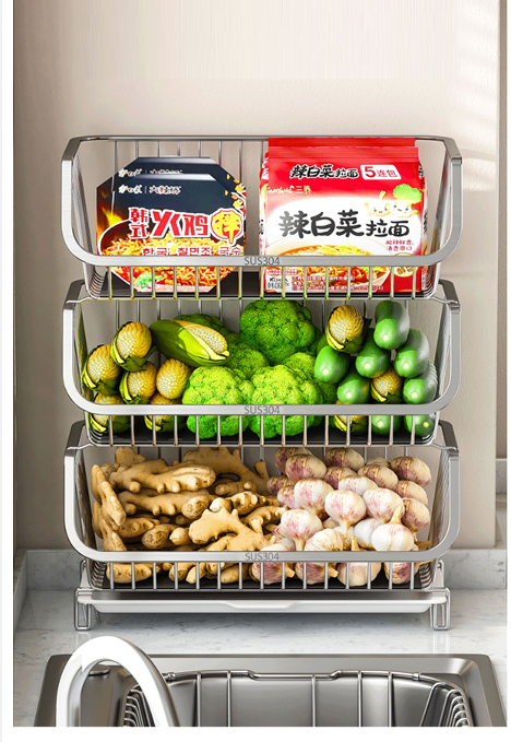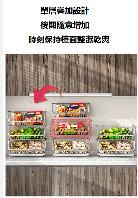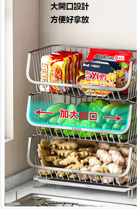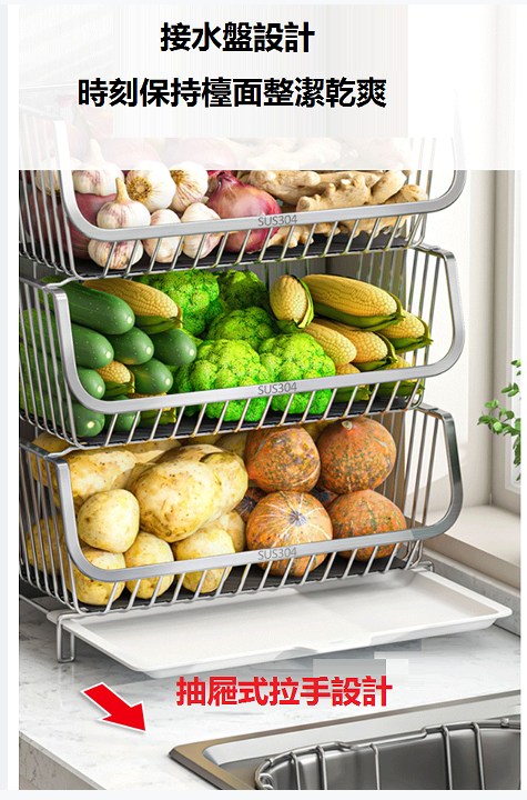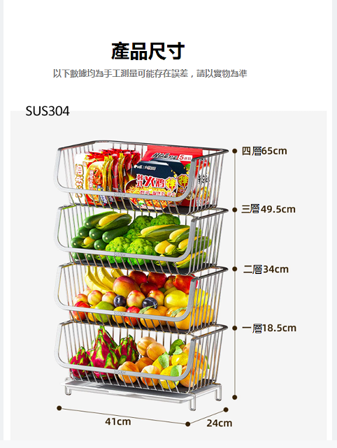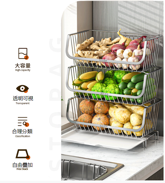 爆款檯面置物收納籃 層架 儲物架(304不銹鋼薑蒜籃四層)