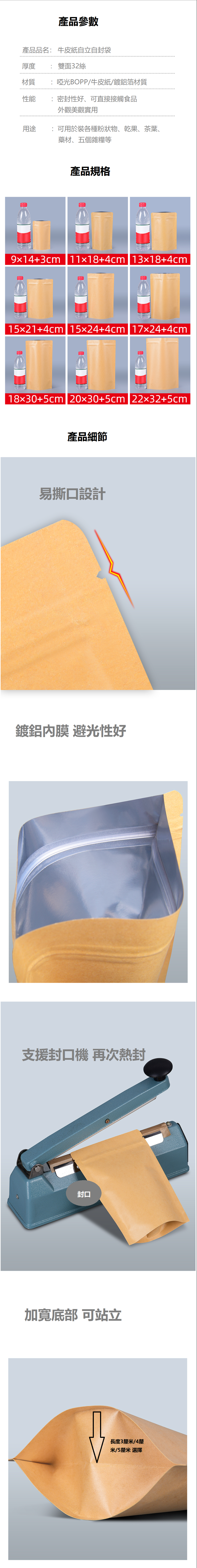爆款牛皮自封紙袋(32絲 15CM*24CM+4CM 100個)