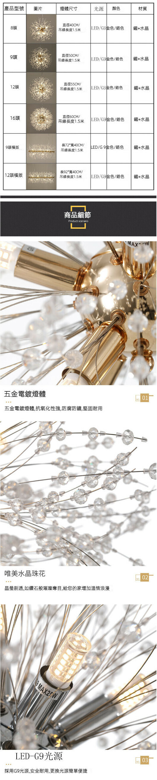 爆款創意蒲公英水晶吊燈(12頭55CM-絡色)【LED三色變光】