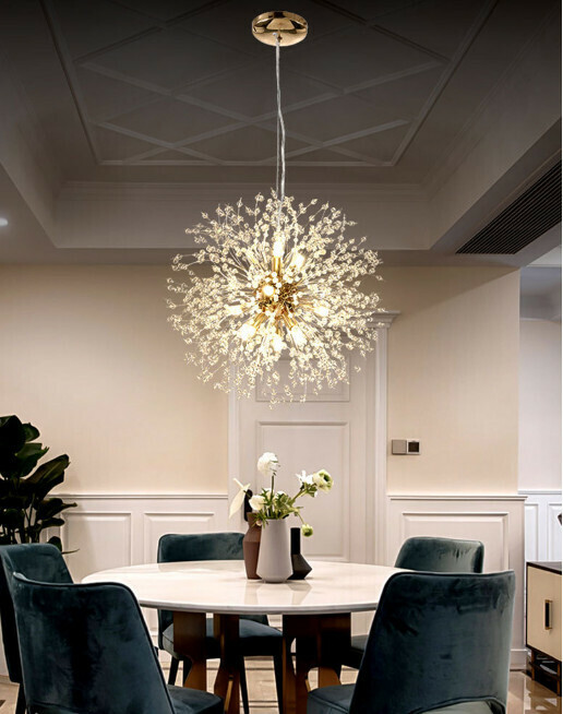 爆款創意蒲公英水晶吊燈(9頭50CM-金色)【LED三色變光】