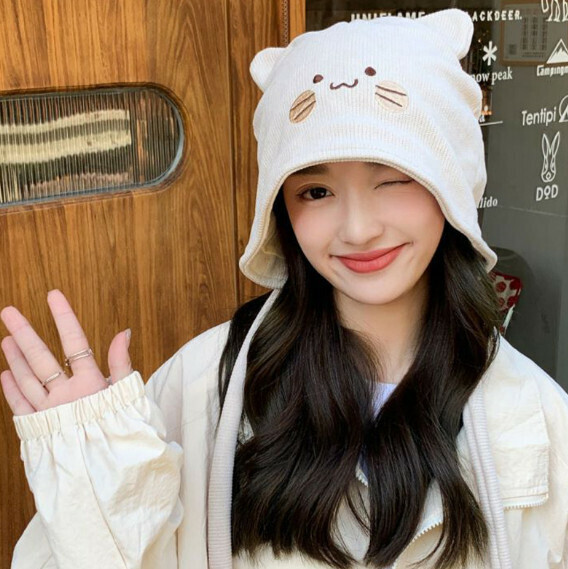 爆款可愛貓耳朵針織帽(A-453卡其色)