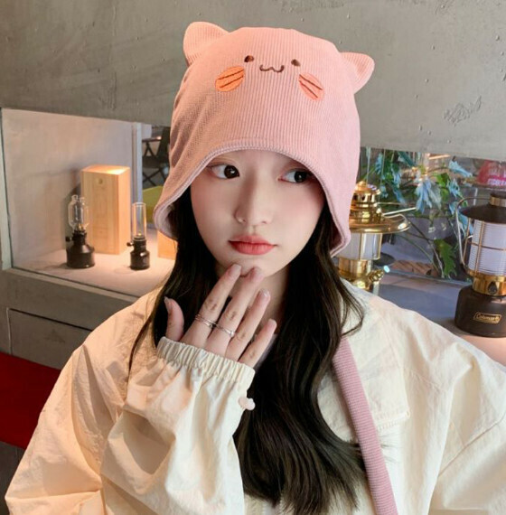 爆款可愛貓耳朵針織帽(A-453粉色)