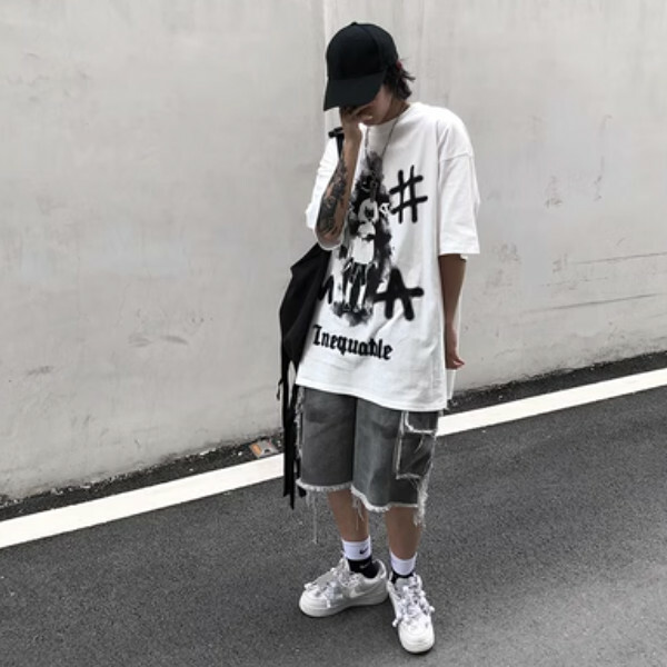 爆款暗黑系塗鴉短袖惡魔少女印花【白色M-2XL碼,下單後與客服確認發貨尺碼】