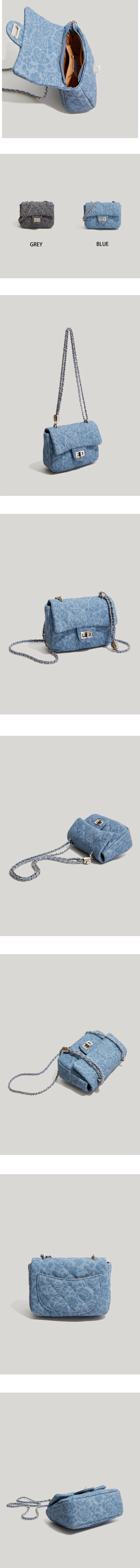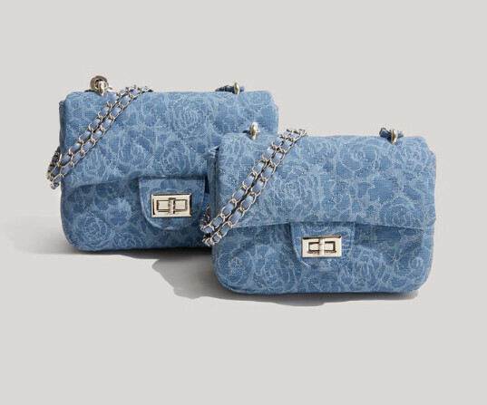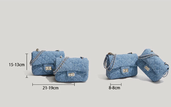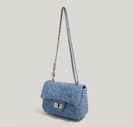 爆款牛仔布小香風單肩斜挎包(黑色小號)