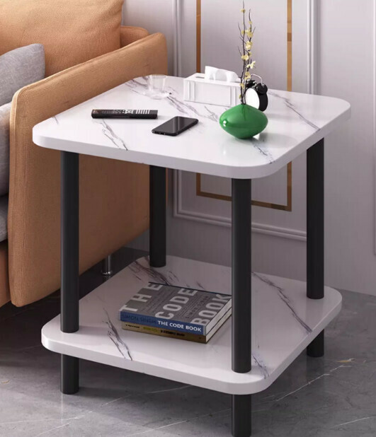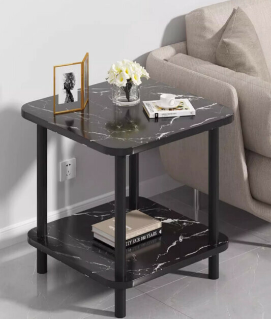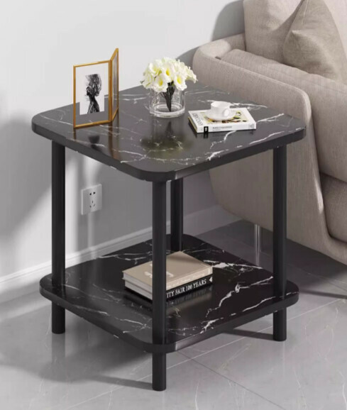 爆款密度板簡約雙層黑腿茶几(黑石紋)【尺寸:50*50*53cm】