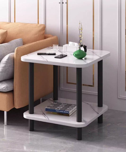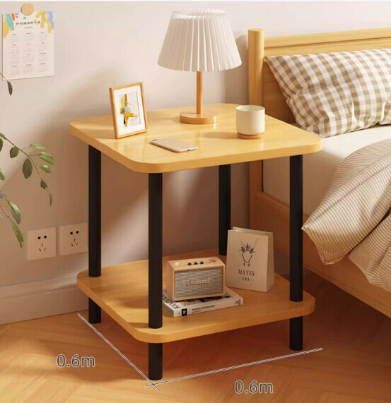爆款密度板簡約雙層黑腿茶几(胡桃色)【尺寸:40*40*53cm】
