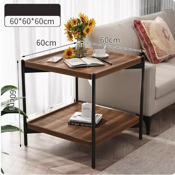爆款密度板簡約方形茶几(胡桃木-加粗鐵腿)【尺寸:60*40*60cm】
