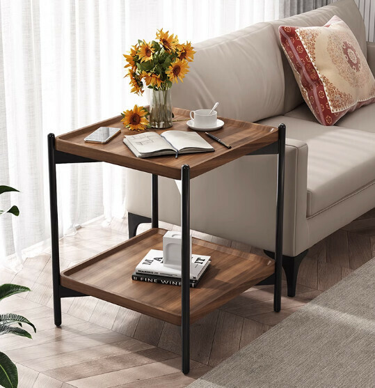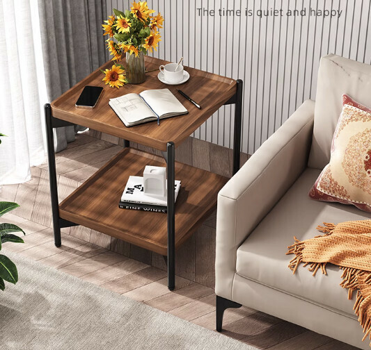 爆款密度板簡約方形茶几(白石紋-加粗鐵腿)【尺寸:60*40*60cm】