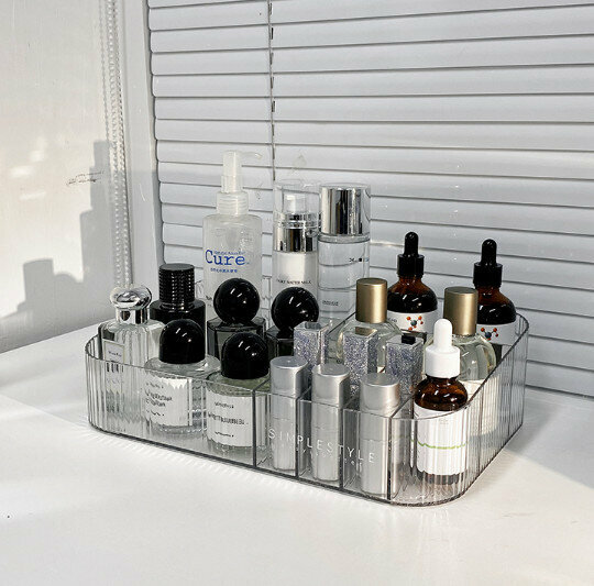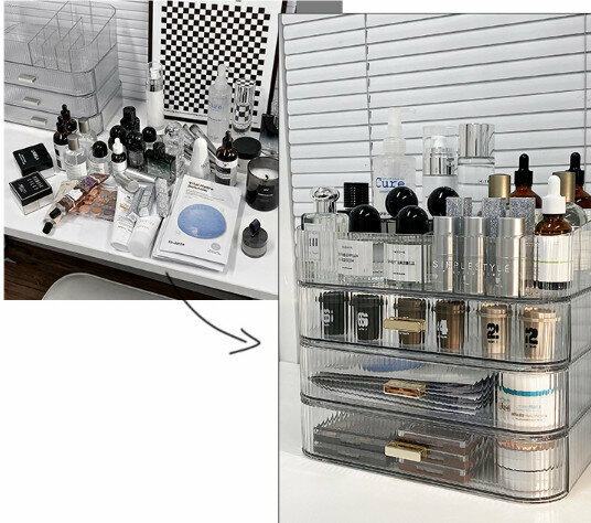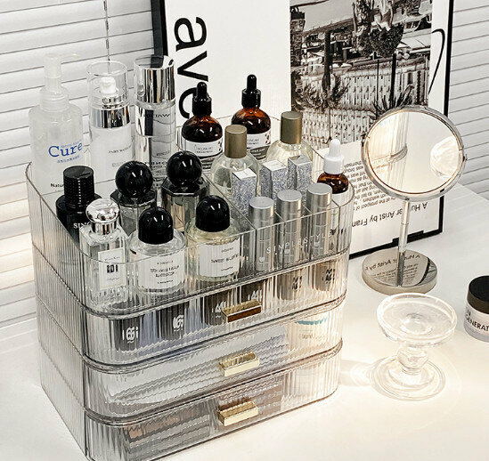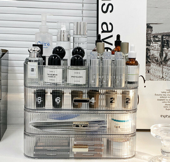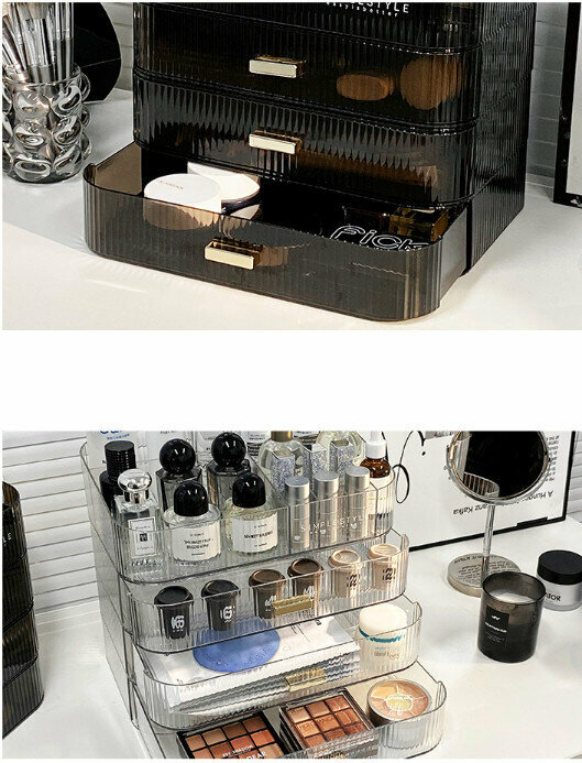 爆款桌面抽屜式化妝品收納盒化妝盒化妝箱(透灰-抽屜)