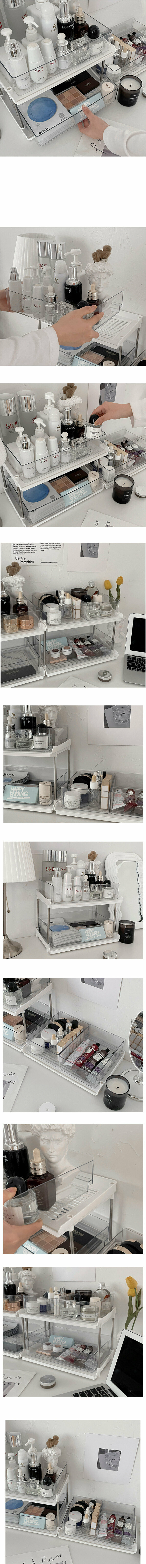 爆款桌面抽屜式護膚品收納盒(雙層雙抽豎款-白色)