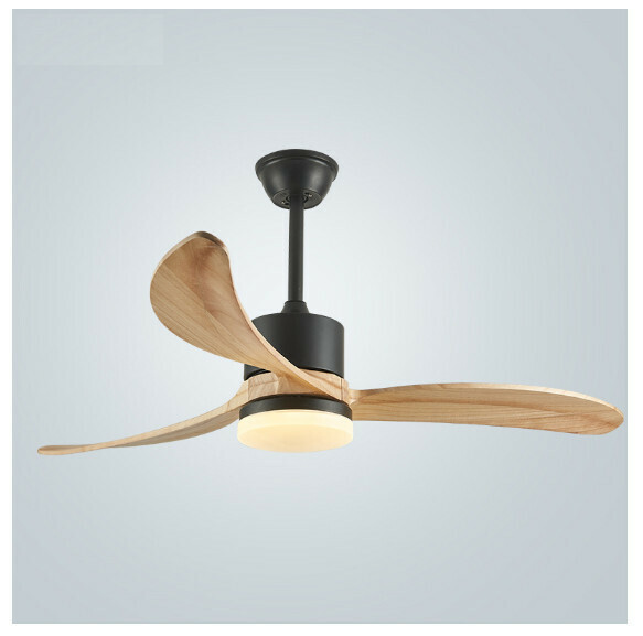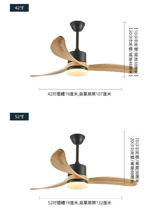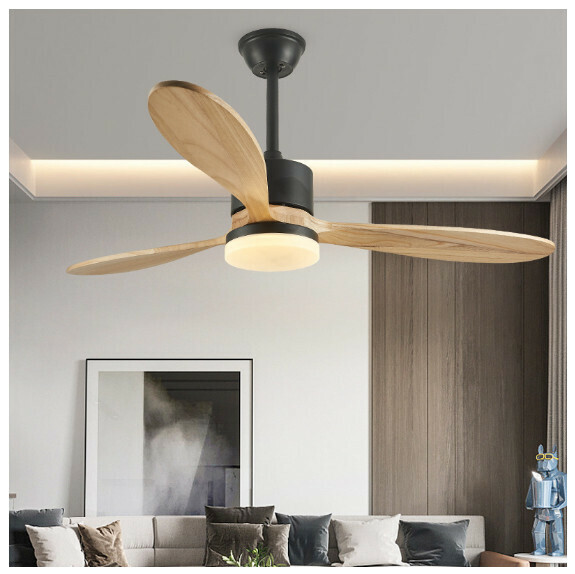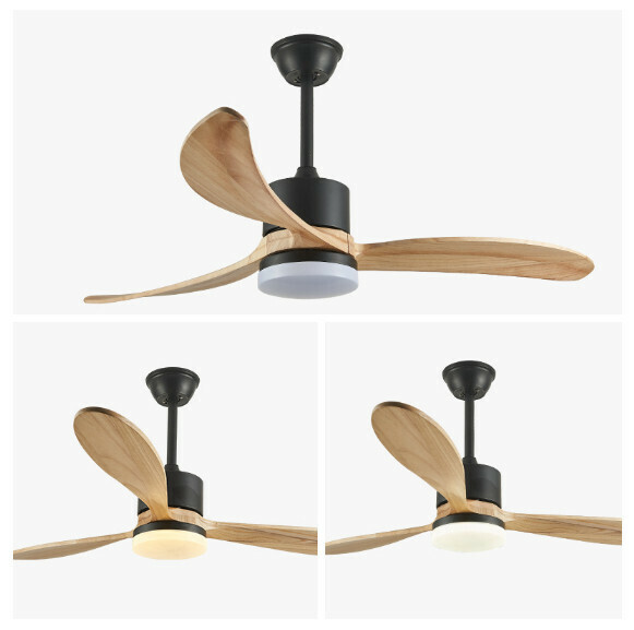 爆款餐廳臥室家用吊扇燈(52寸黑色+原木直葉【變頻遙控款】)