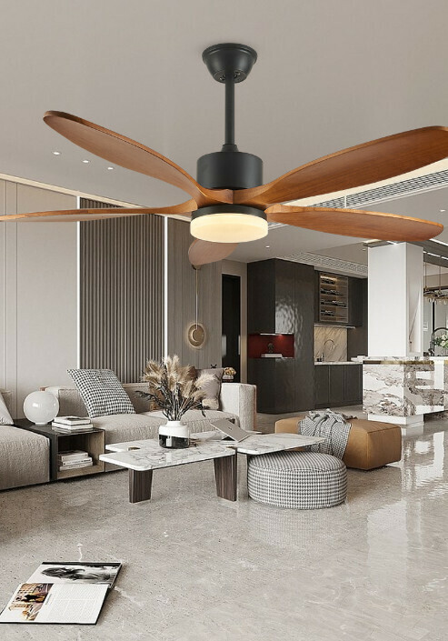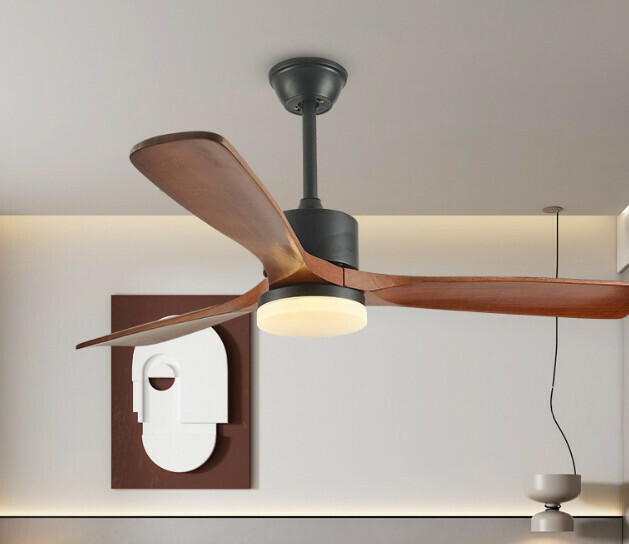 爆款餐廳臥室家用吊扇燈(52寸黑色+三葉胡桃木【變頻遙控款】)