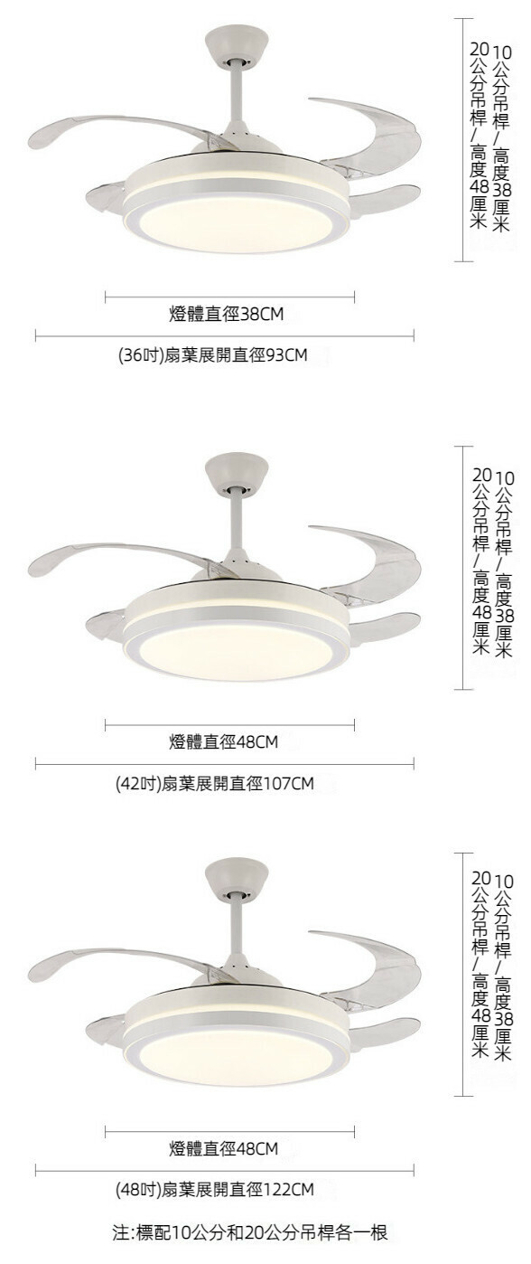爆款餐廳臥室家用吊扇燈(全光譜-黑色-42寸-三色變光【變頻遙控款】)
