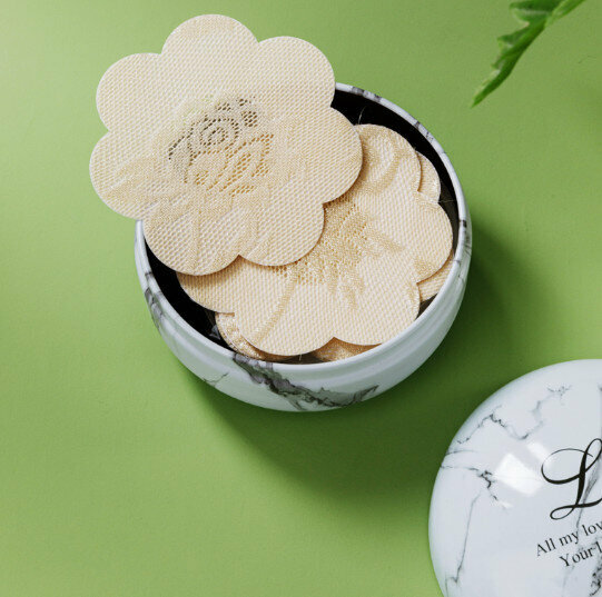 爆款一次性防凸點蕾絲乳貼(黑色圓形30片+花型30片+收納盒)